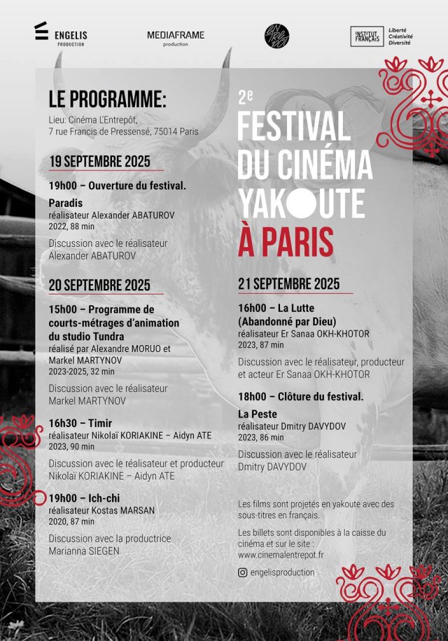 En décembre 2024, avec le soutien de l’Institut Français, Irina a organisé pour la première fois le Festival du cinéma yakoute à Paris.